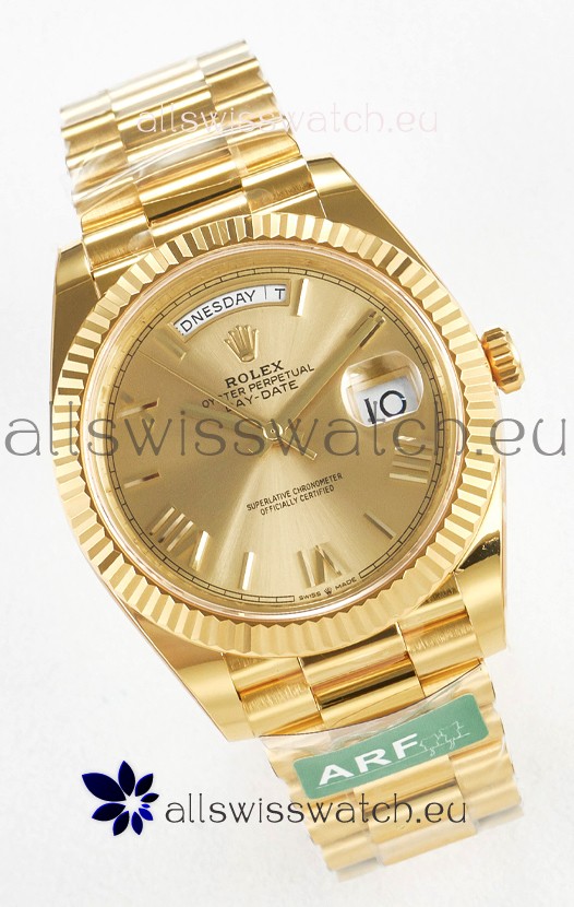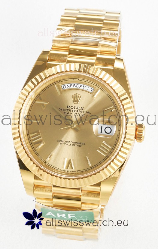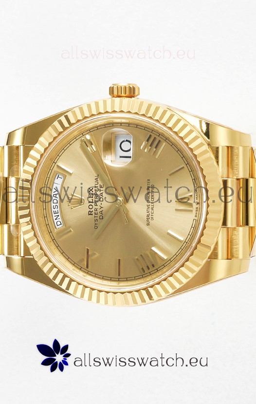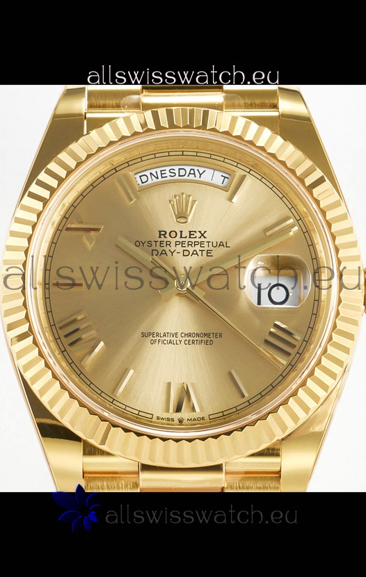 Rolex Day Date Super Clone 18K Yellow Gold Watch 40MM - Gold Dial 1:1 Mirror Quality