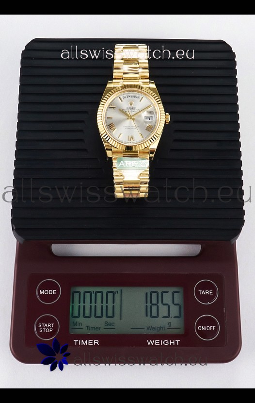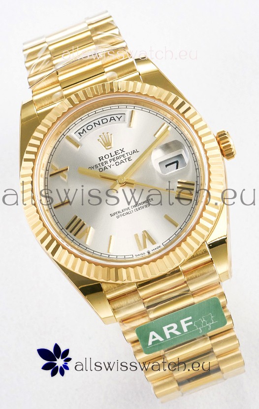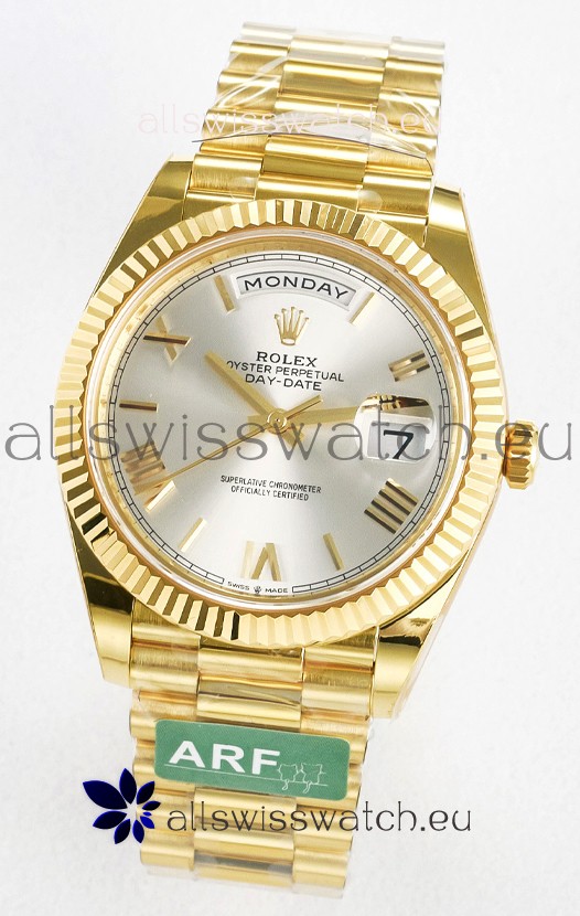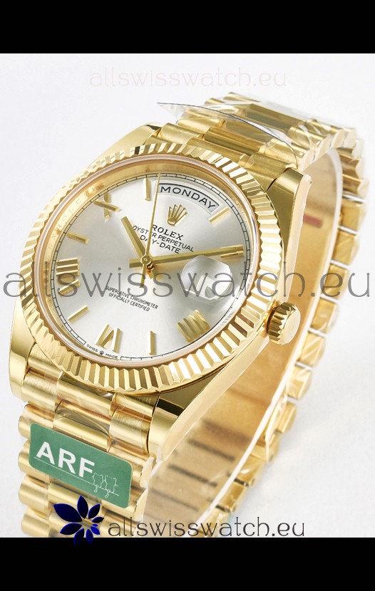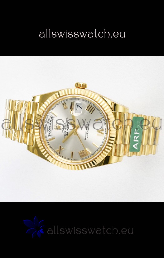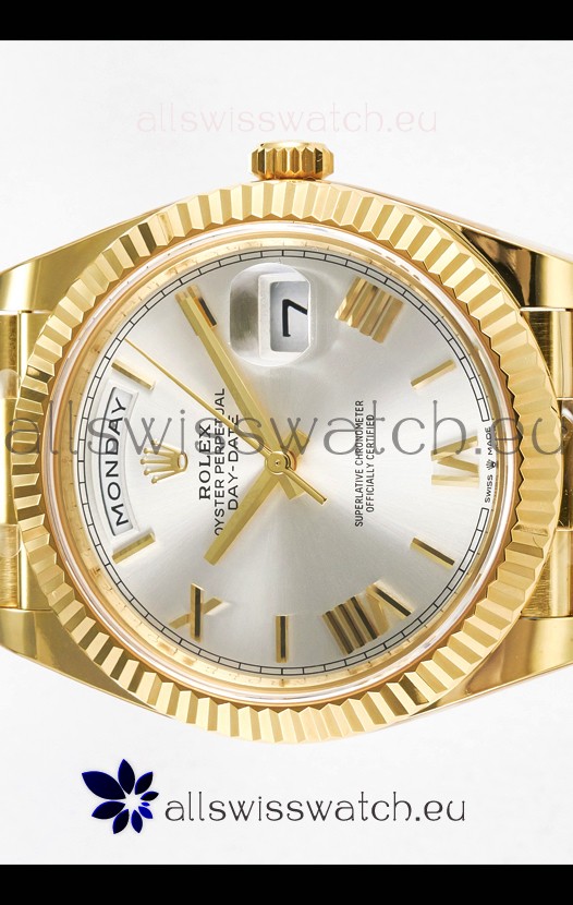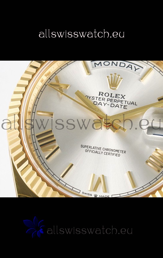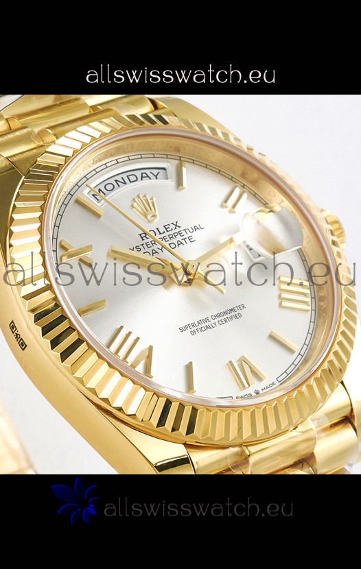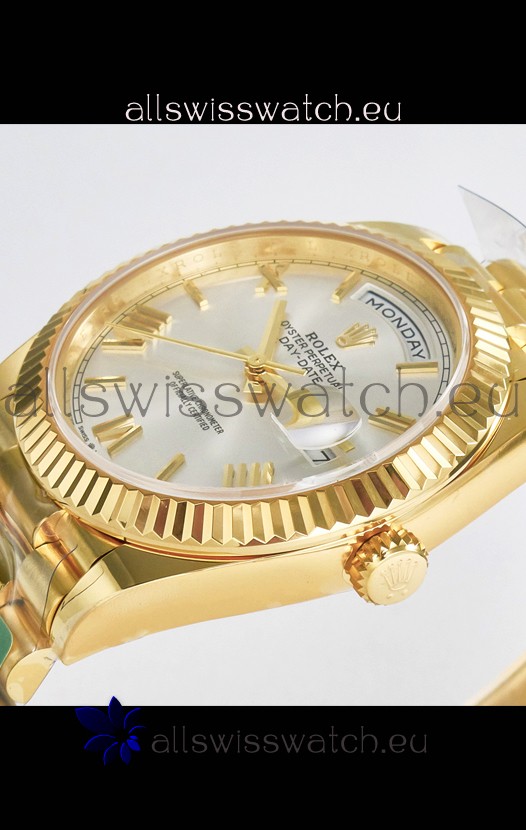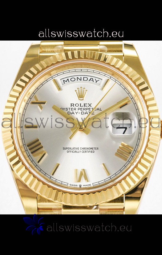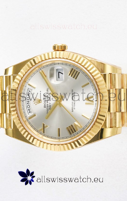 Rolex Day Date Super Clone 18K Yellow Gold Watch 40MM - Steel Dial 1:1 Mirror Quality