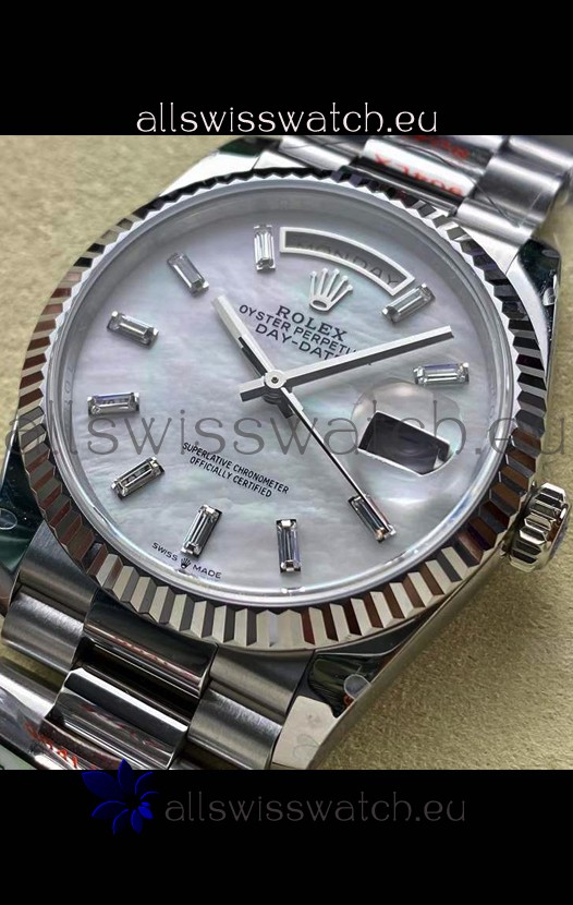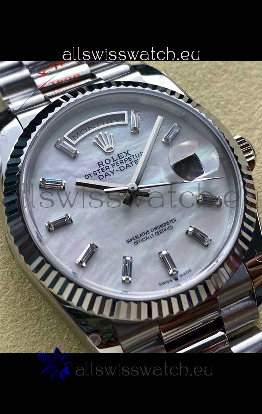 Rolex Day Date Super Clone 904L Stainless Steel Watch 40MM - Mother of Pearl Dial Mirror Quality