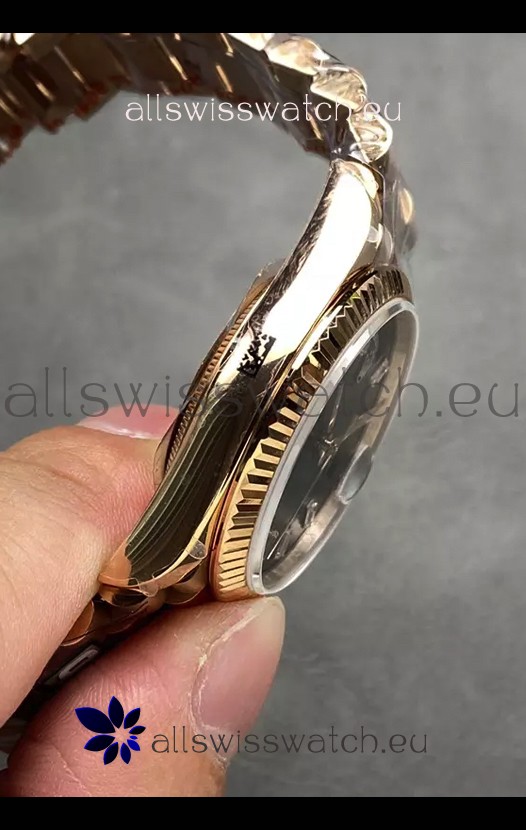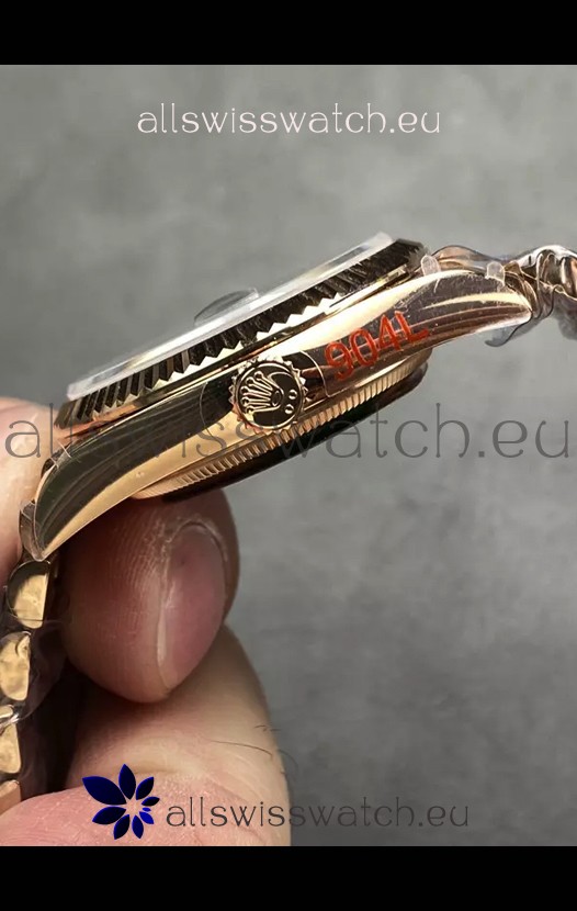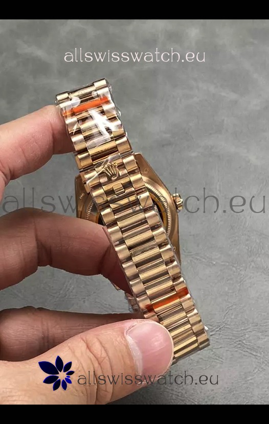 18K Rose Gold Plating on 904L Stainless Steel New Design President Strap with Folding Clasps complete with Rolex Markings and Engravings