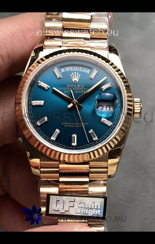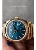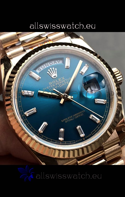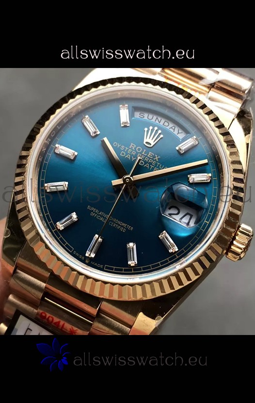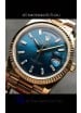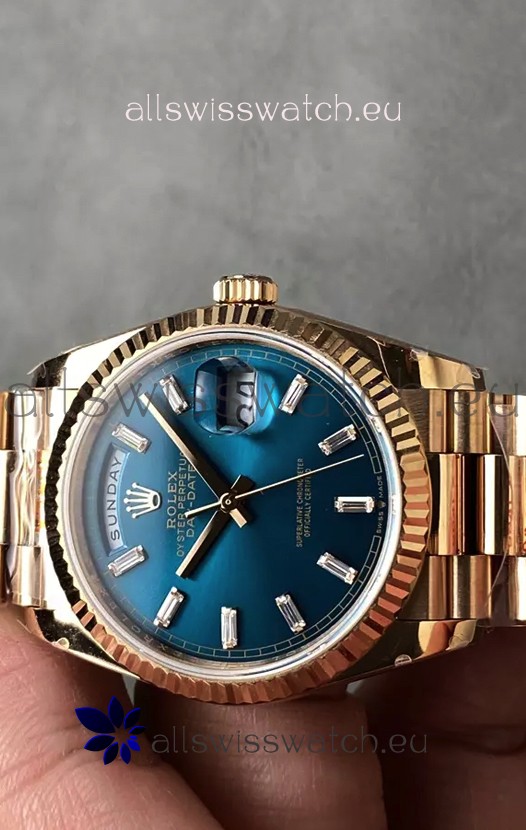 Rolex Day Date Super Clone Rose Gold Blue Dial Crystal Numerals Watch 36MM - 1:1 Mirror Quality