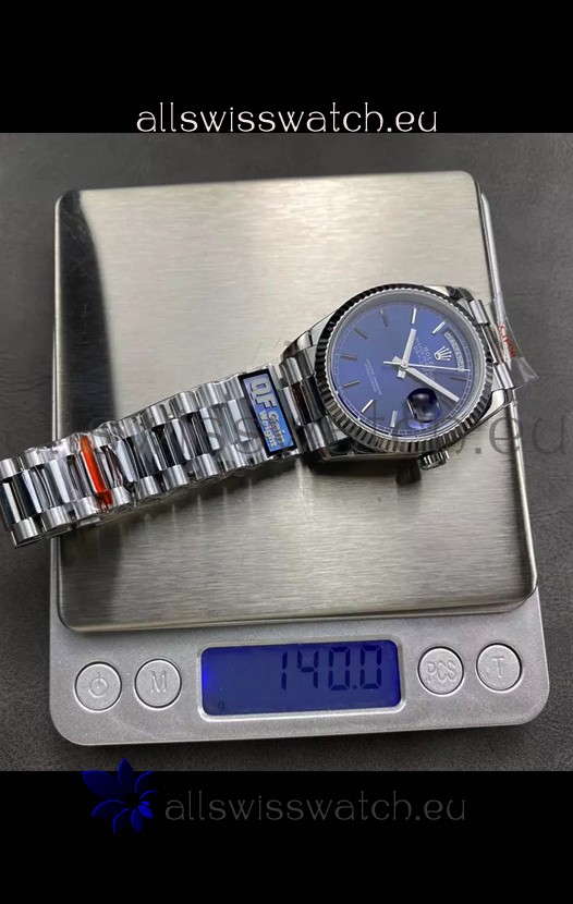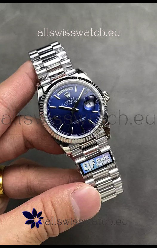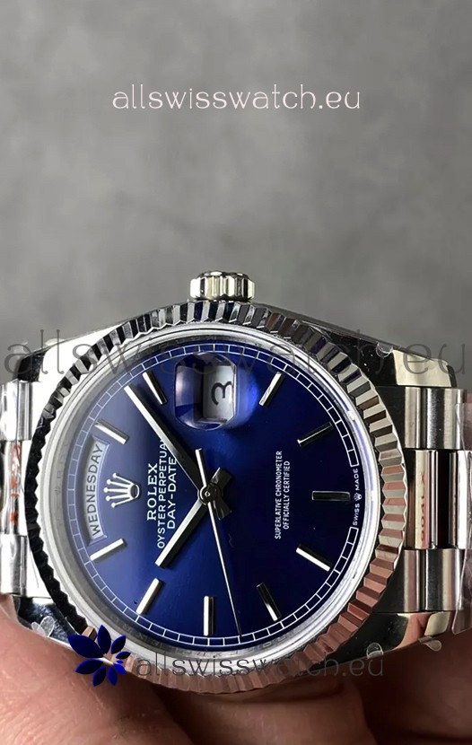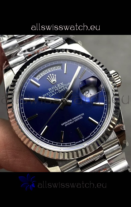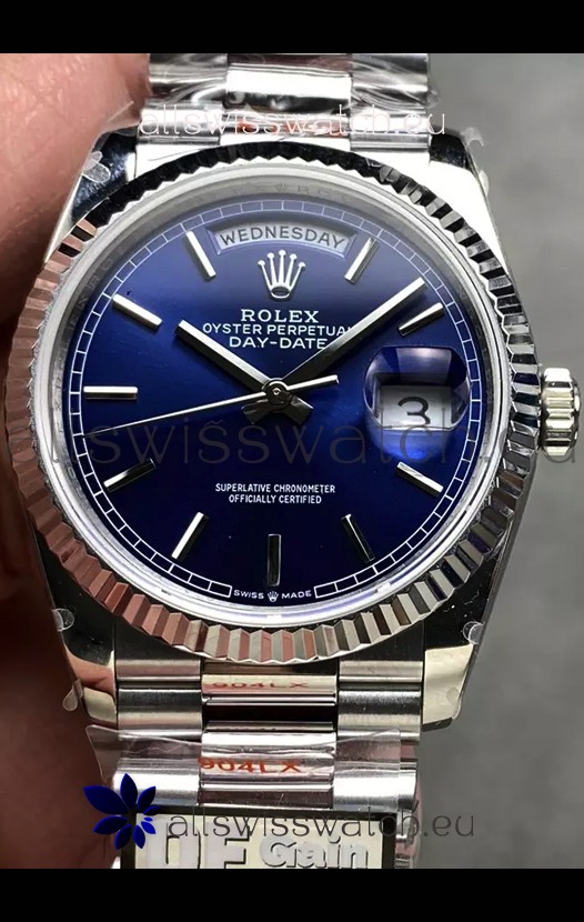Rolex Day Date Super Clone Stainless Steel Blue Dial Watch 36MM - 1:1 Mirror Quality