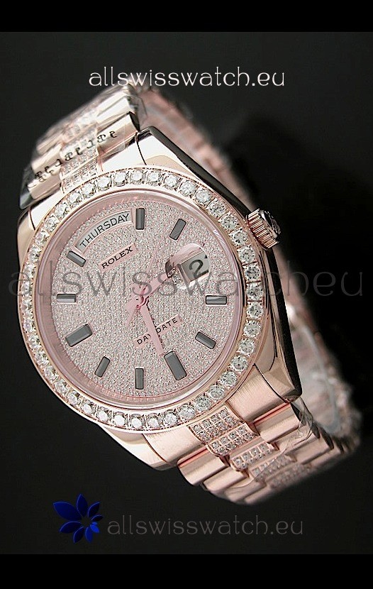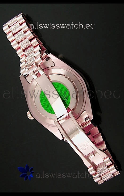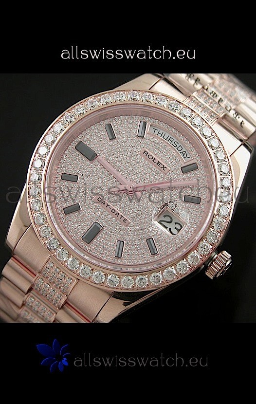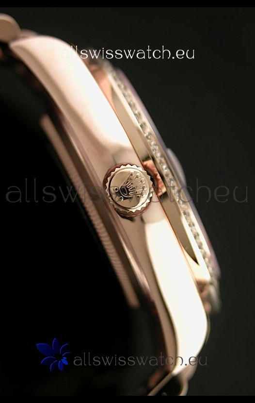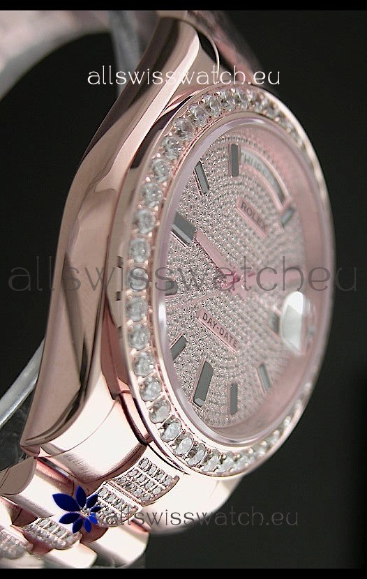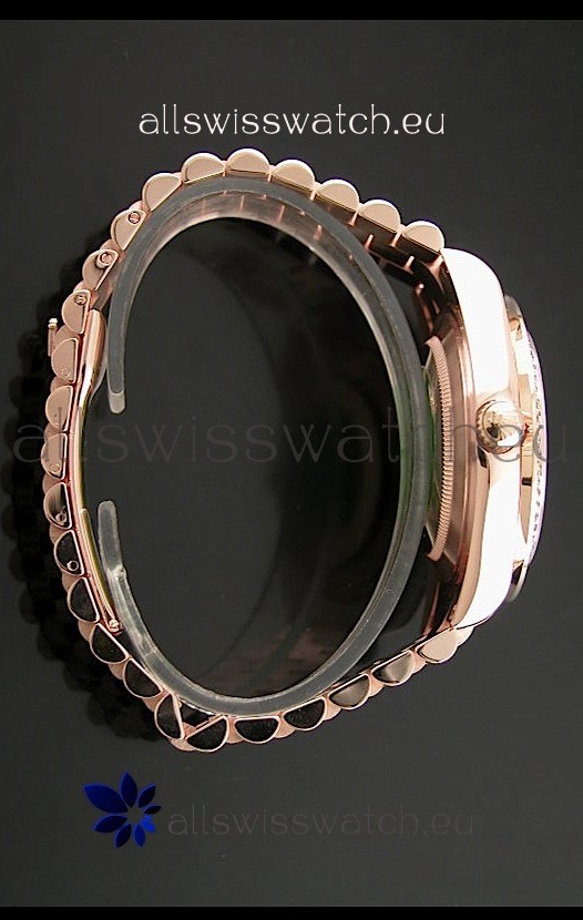 Strap: 18K Rose Gold Plated Presidential Bracelet with Diamond Crestings on Midlinks with Rolesor
