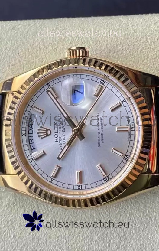 Rolex Day Date Yellow Gold Casing Watch in Steel Dial 36MM - 1:1 Mirror Quality