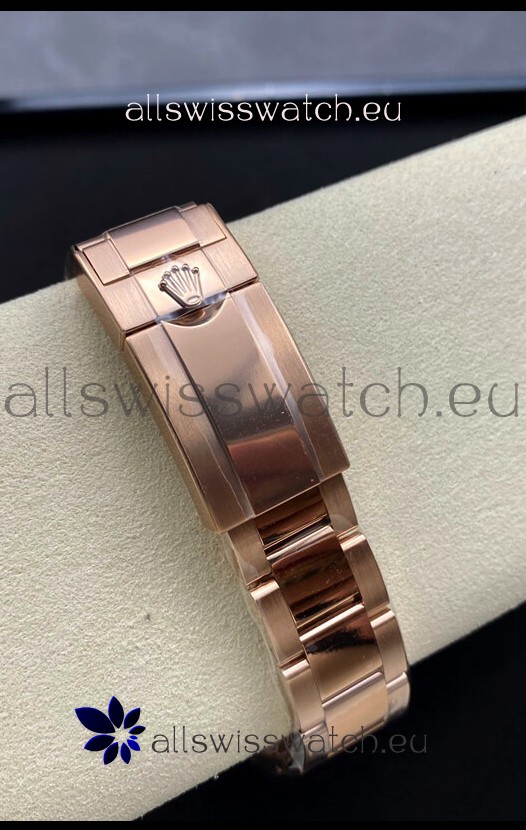 18K Rose Gold Plating on 904L Steel with New style Flip-Lock Perfectly Replicated Clasp Complete with Rolex Markings and Engravings as per the Genuine