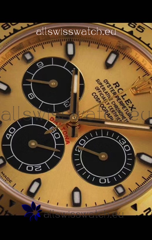The Best Rolex Daytona Model Replicated up to Date. The First Rolex model to adopt a 904L Steel on Casing and Strap which is the same steel used by Rolex. Compared with an Original Side by Side and there were NO Differences Whatsoever. Complete list of details have been stated below and you will see that tremendous amount of detaiing and work has been put into this edition.