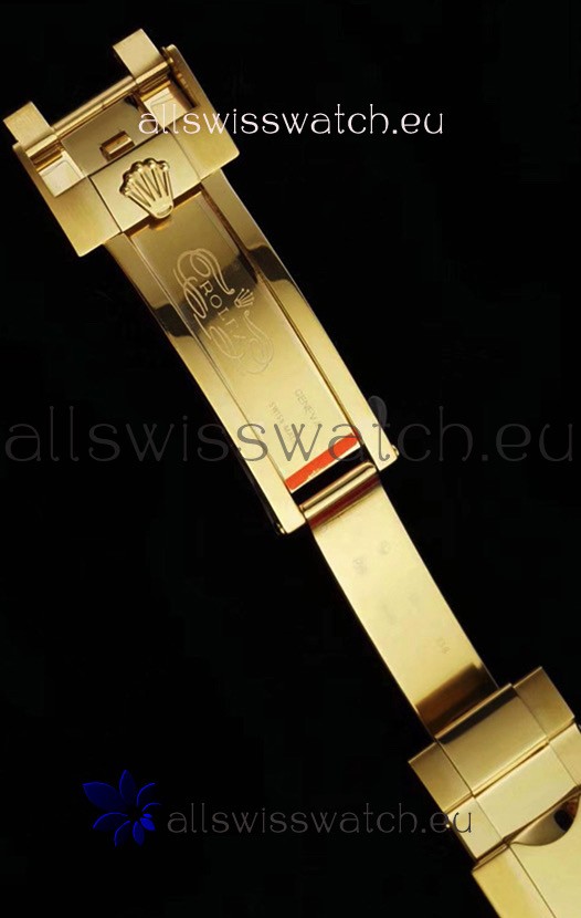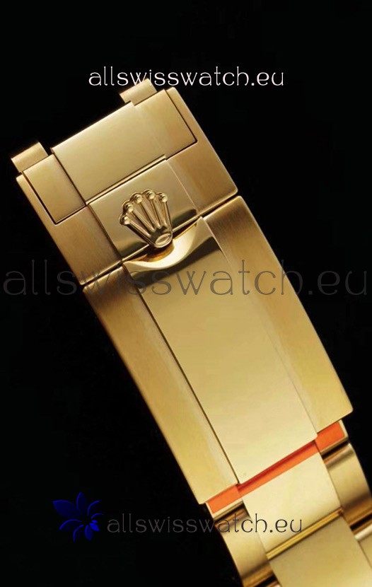 18K Yellow Gold Plating on 904L Steel with New style Flip-Lock Perfectly Replicated Clasp Complete with Rolex Markings and Engravings as per the Genuine