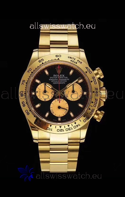 The Best Rolex Daytona Model Replicated up to Date. The First Rolex model to adopt a 904L Steel on Casing and Strap which is the same steel used by Rolex. Compared with an Original Side by Side and there were NO Differences Whatsoever. Complete list of details have been stated below and you will see that tremendous amount of detaiing and work has been put into this edition.