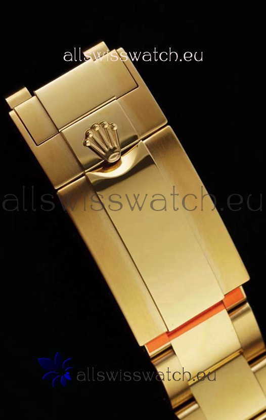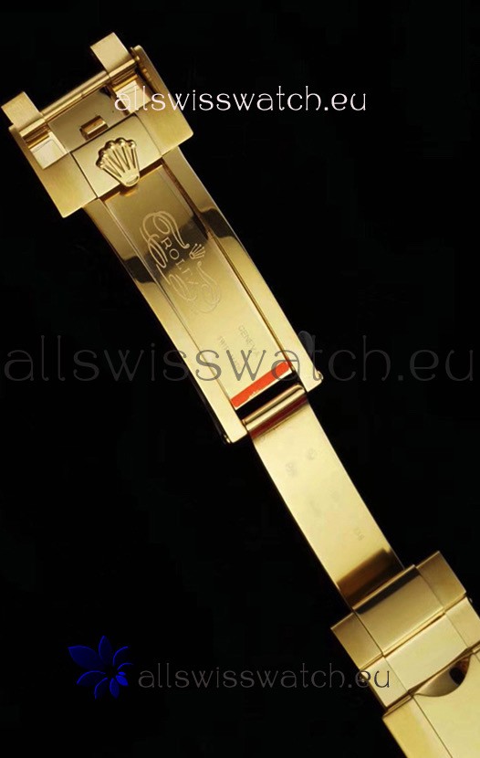 18K Yellow Gold Plating on 904L Steel with New style Flip-Lock Perfectly Replicated Clasp Complete with Rolex Markings and Engravings as per the Genuine