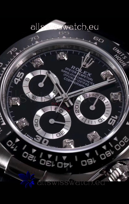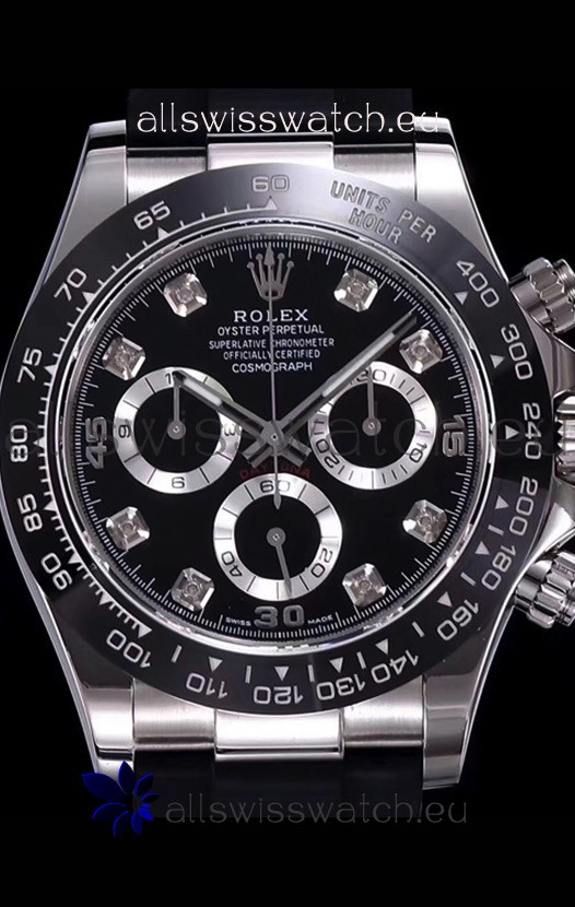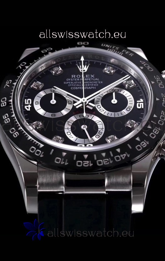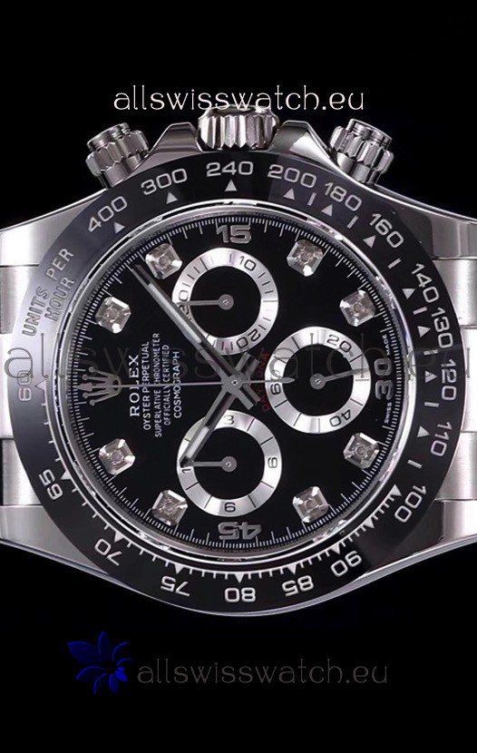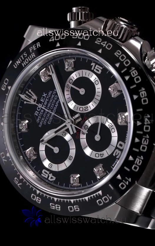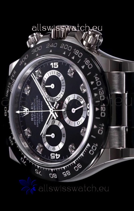The Best Rolex Daytona Model Replicated up to Date. The First Rolex model to adopt a 904L Steel on Casing and Strap which is the same steel used by Rolex. Compared with an Original Side by Side and there were NO Differences Whatsoever. Complete list of details have been stated below and you will see that tremendous amount of detaiing and work has been put into this edition.