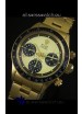 18K Champange Gold Plated Case on 440 Solid Stainless Case with Rolex Markings and Engravings like the Authentic with Fixed Black Tachymeter Bezel
