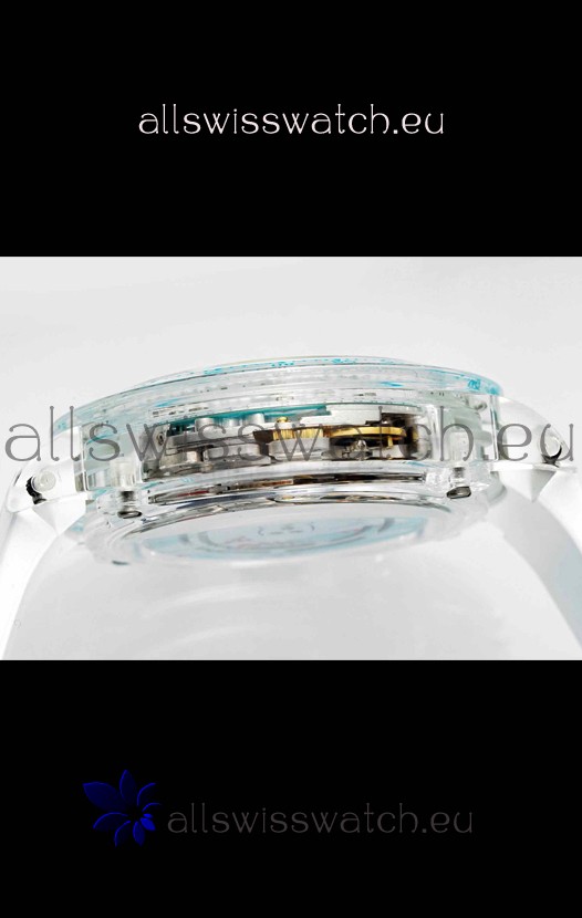 Genuine Anti Reflective Scratch Proof Sapphire Crystal with Semi-Invisible crown etched at 6:00 position.