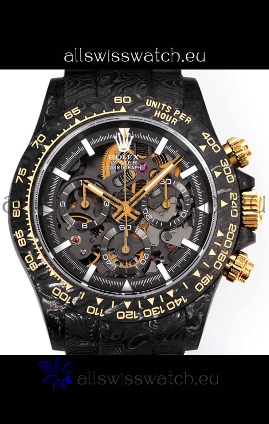 Rolex Daytona Blaken Black Carbon 1:1 Swiss Mirror Replica Skeleton Dial Cal.4130 Movement