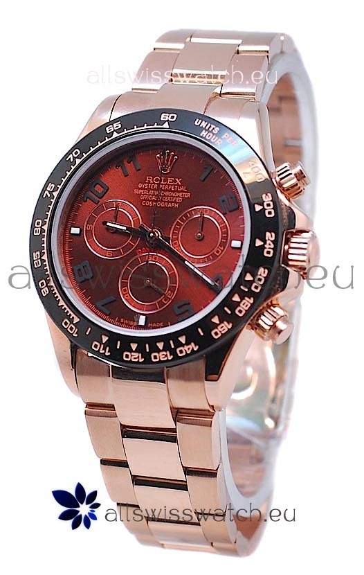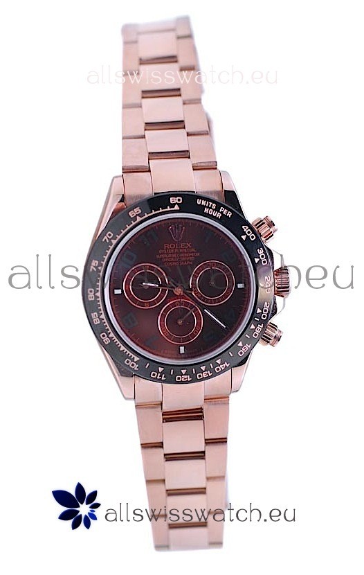 Rolex Daytona Chronograph MonoBloc Cerachrom Bezel Swiss Replica Rose Gold Plated Watch