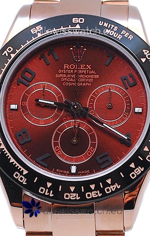 You're reviewing: Rolex Daytona Chronograph MonoBloc Cerachrom Bezel Swiss Replica Rose Gold Plated Watch