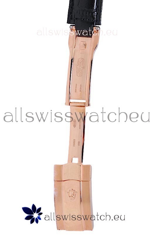 Strap: Genuine Black Leather strap with Rolex markings and Engravings exactly like the Authentics