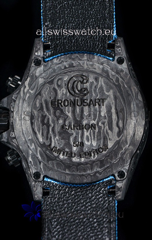 One Piece Solid Forged Carbon Casing with Natural Patterns. No Two watches would be alike.