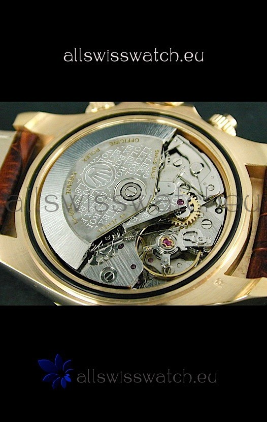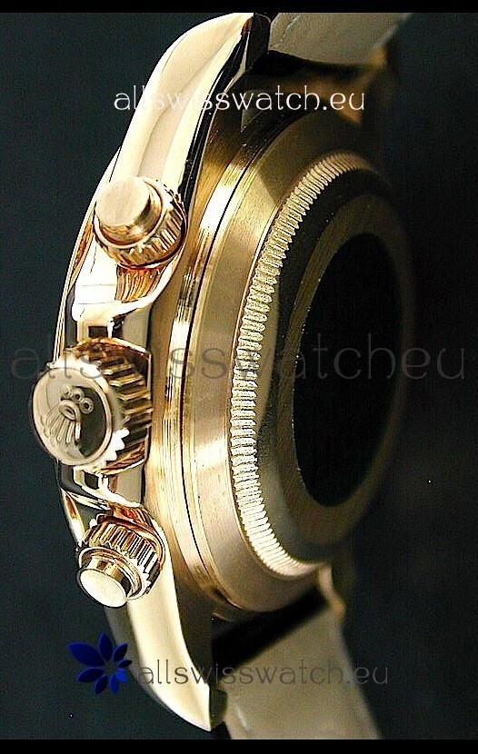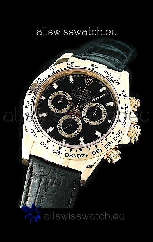 Rolex Daytona Cosmograph Swiss Replica Gold Watch in Black Leather Strap