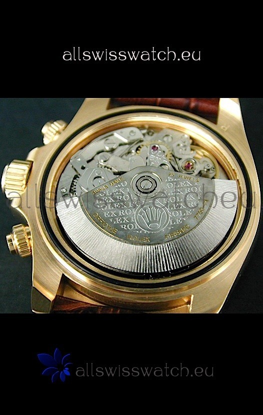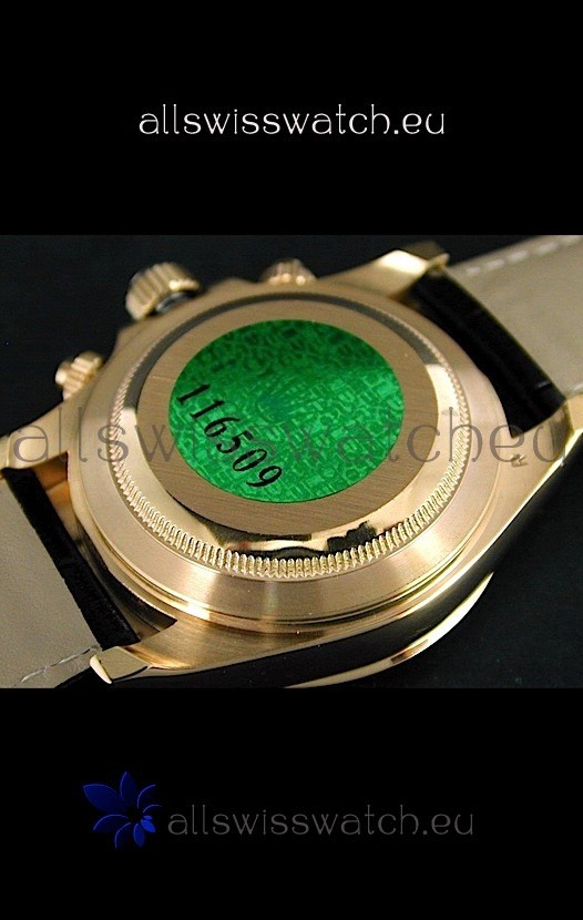 You're reviewing: Rolex Daytona Cosmograph Swiss Replica Gold Watch in Black Leather Strap