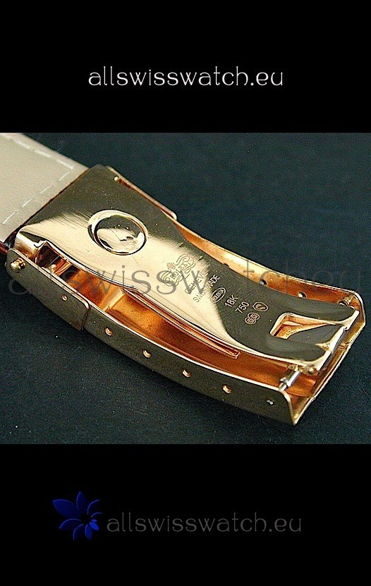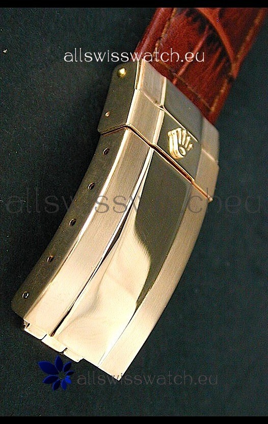 Strap: Genuine Black Leather Strap with Rolex Folding Clasp