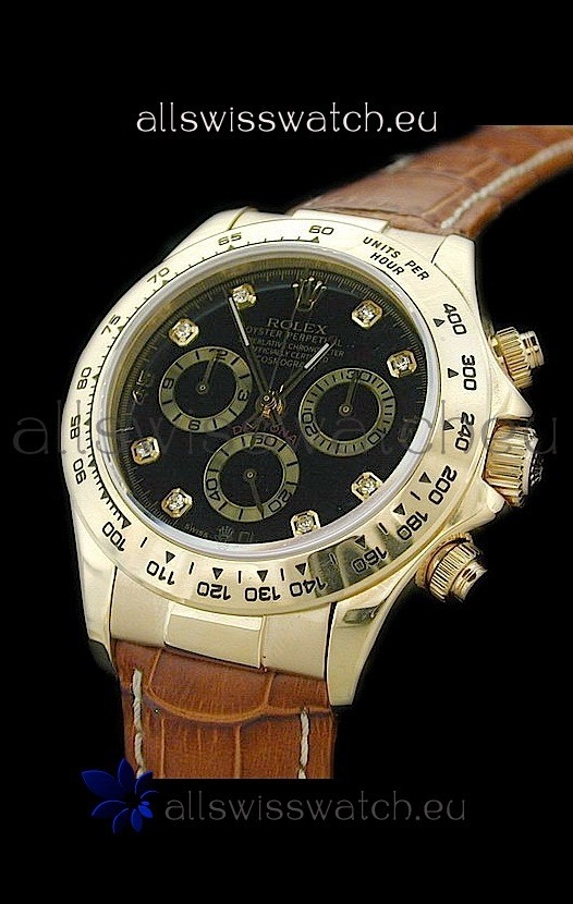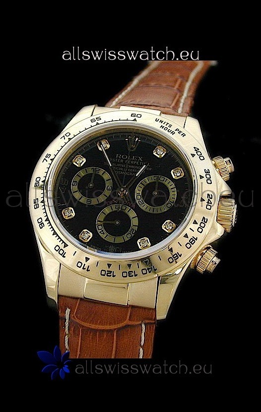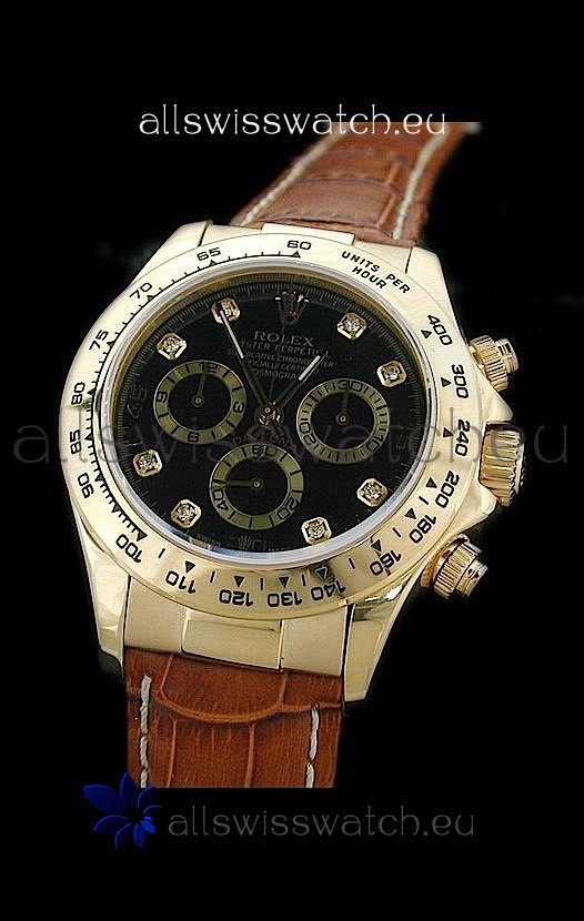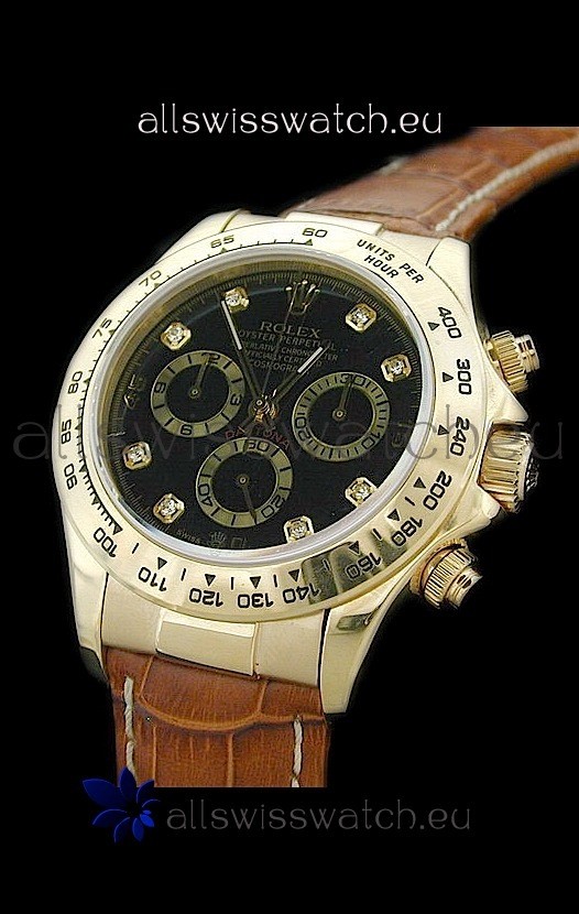 Rolex Daytona Cosmograph Swiss Replica Gold Watch in Diamond Hour Markers