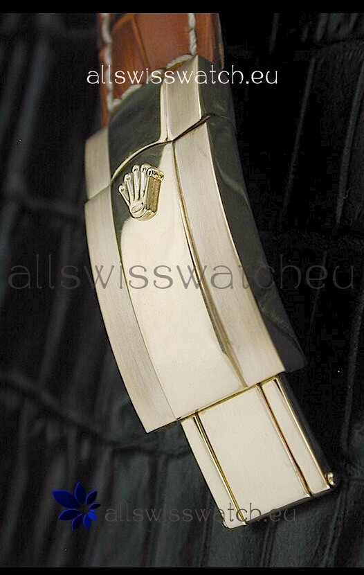 Strap: Genuine Brown Leather Strap with Rolex Folding Clasp