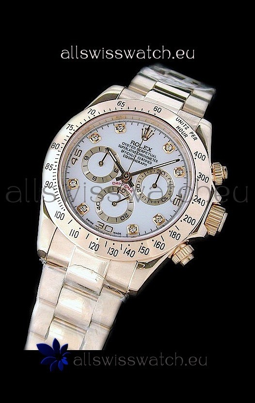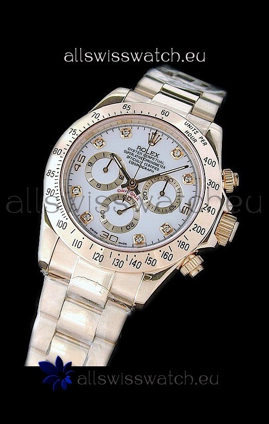 You're reviewing: Rolex Daytona Cosmograph Swiss Replica Gold Watch in White Dial