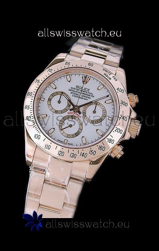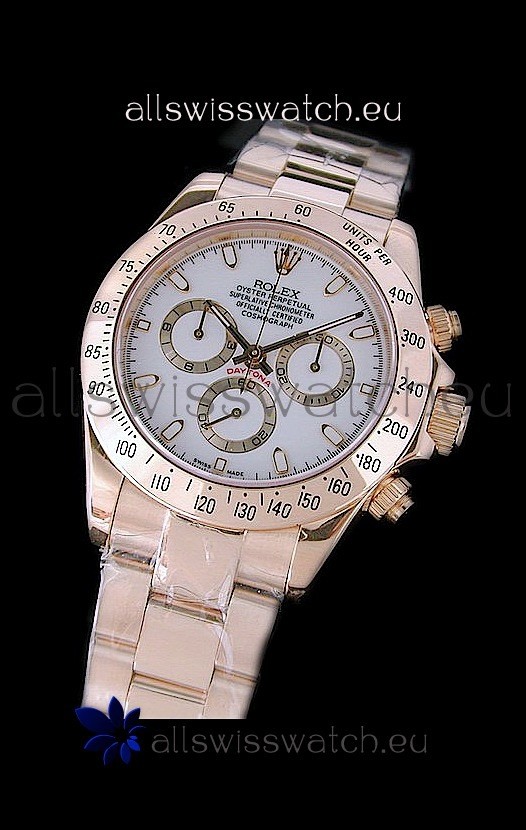 Rolex Daytona Cosmograph Swiss Replica Gold Watch in White Dial