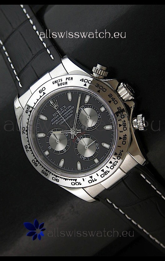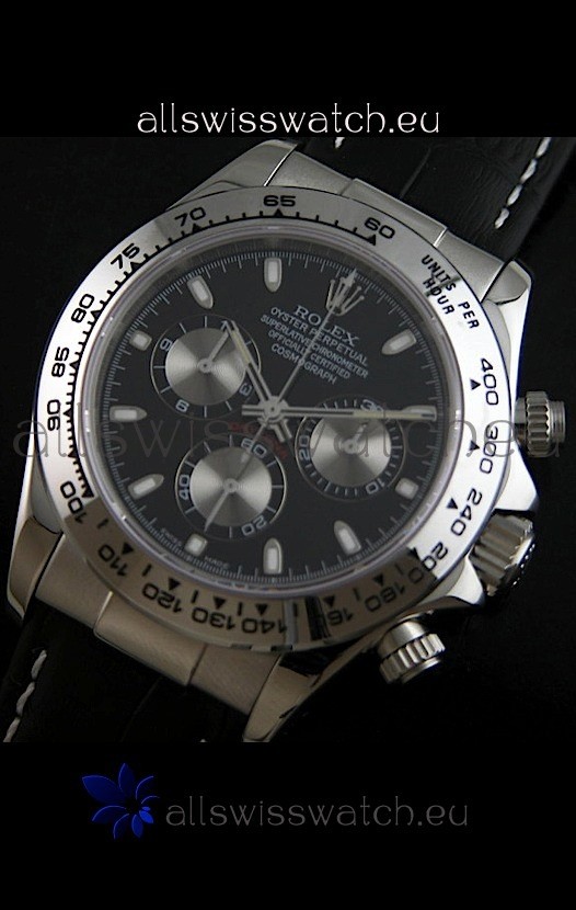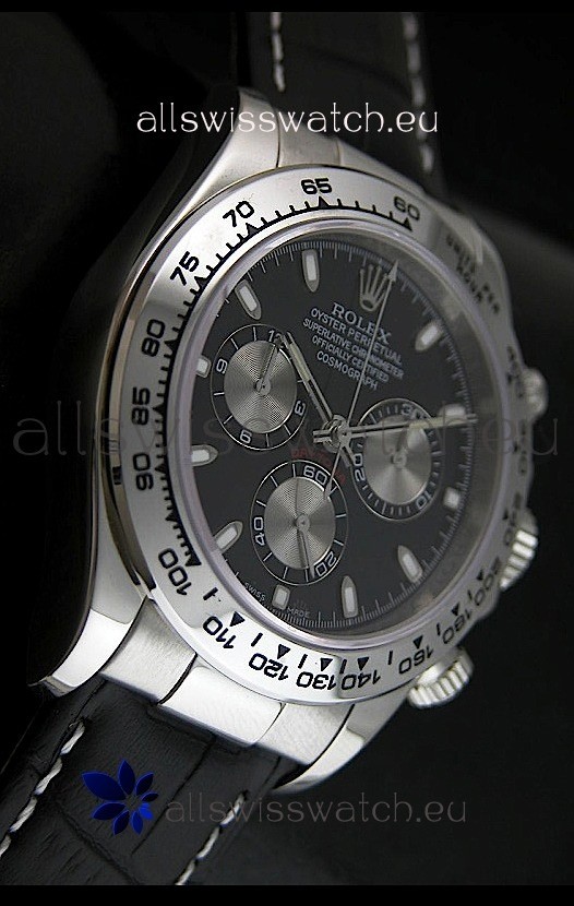 Rolex Daytona Cosmograph Swiss Replica Stainless Steel Watch in Black Dial