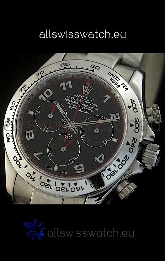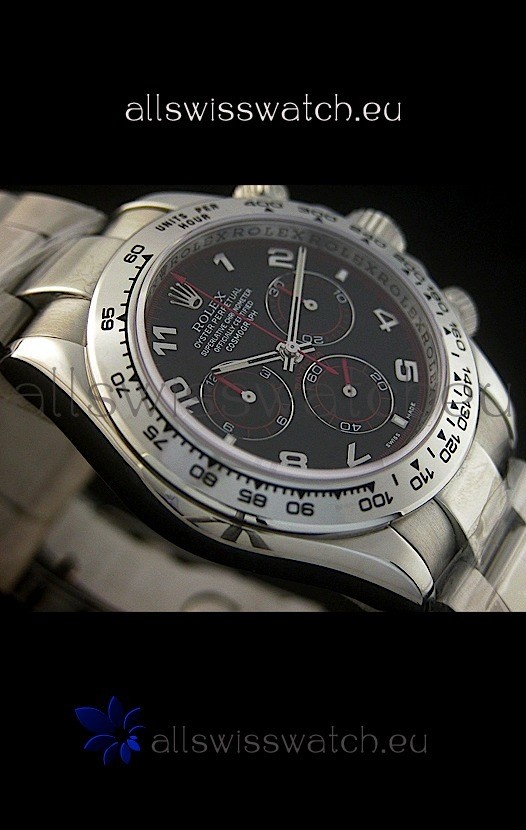 Rolex Daytona Cosmograph Swiss Replica Stainless Steel Watch in Black Dial