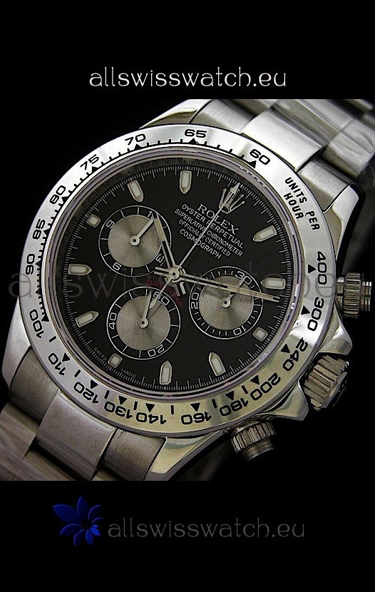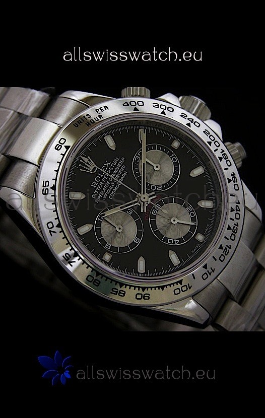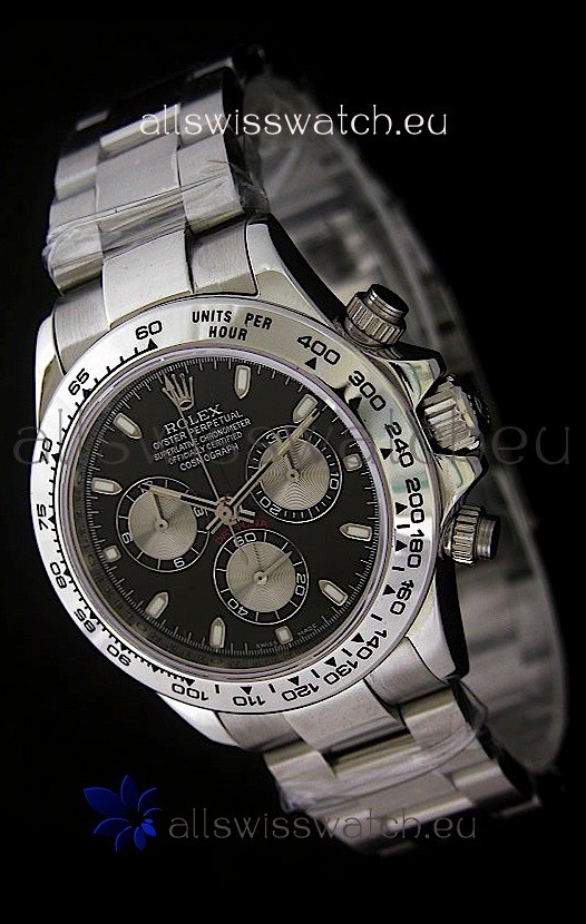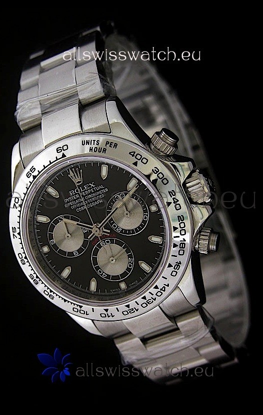 Rolex Daytona Cosmograph Swiss Replica Steel Watch in Black Dial