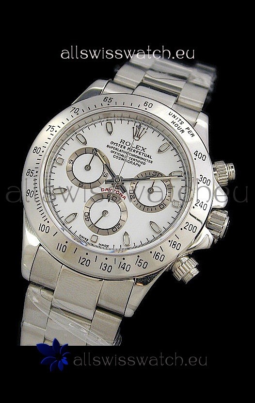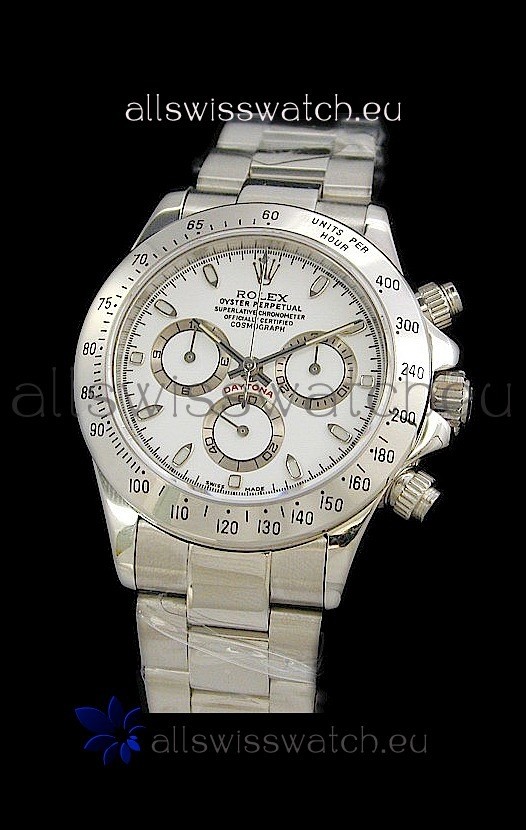 Rolex Daytona Cosmograph Swiss Replica Steel Watch in White Dial