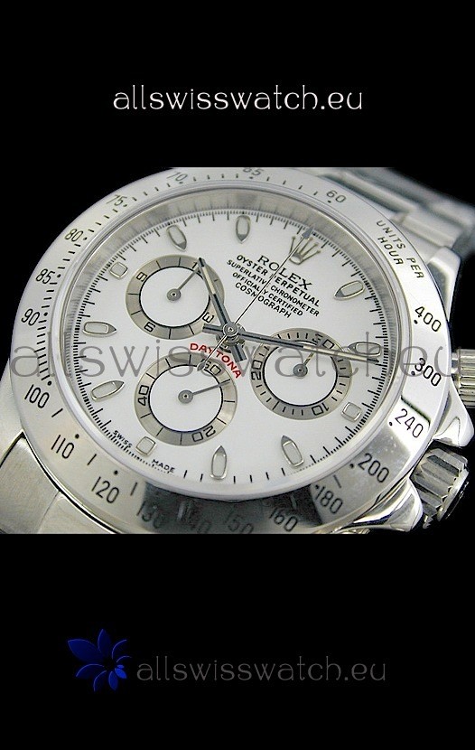 You're reviewing: Rolex Daytona Cosmograph Swiss Replica Steel Watch in White Dial