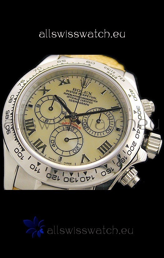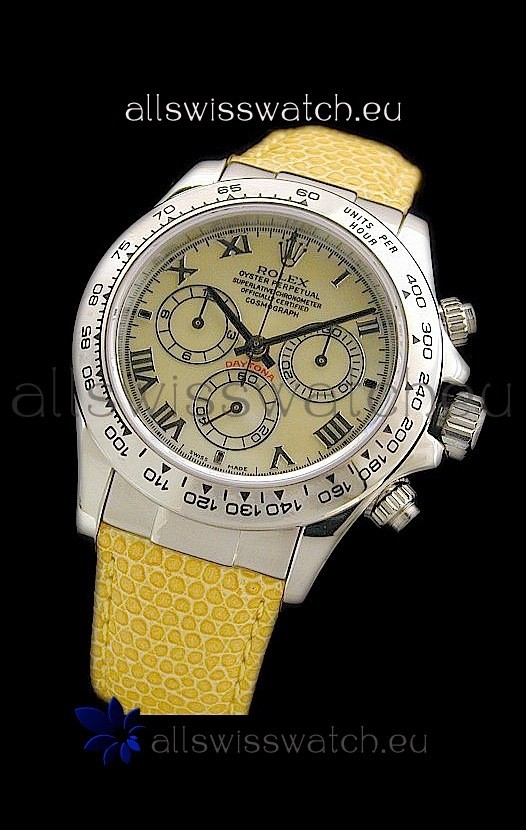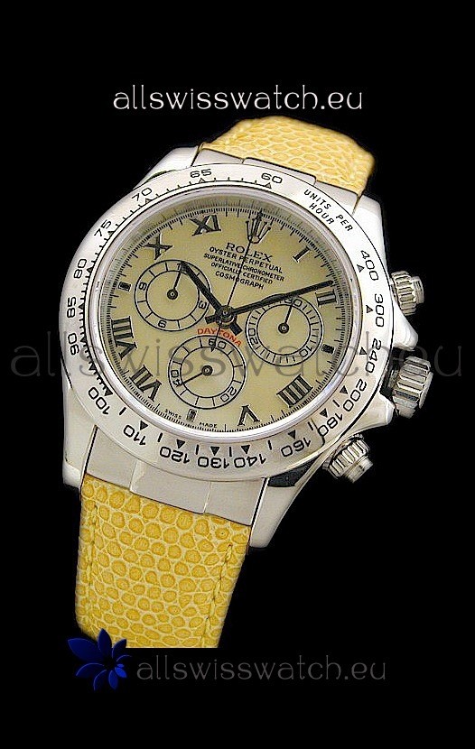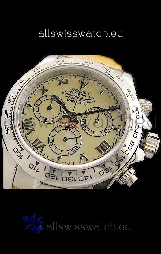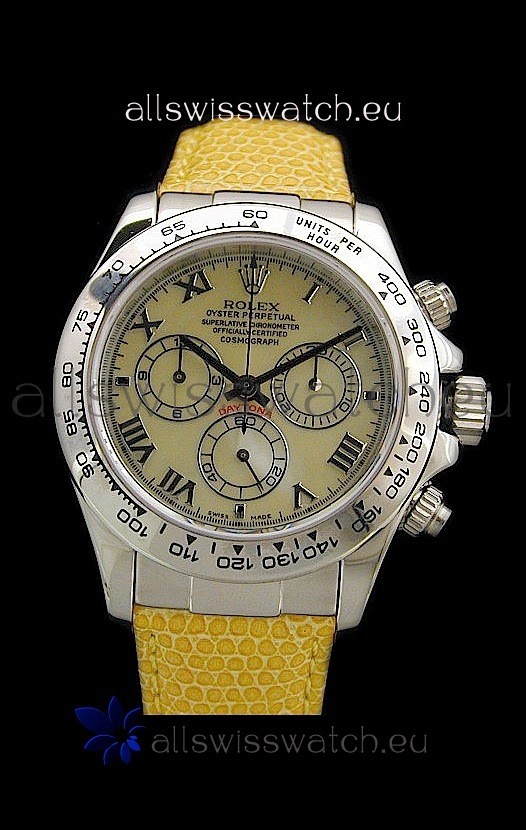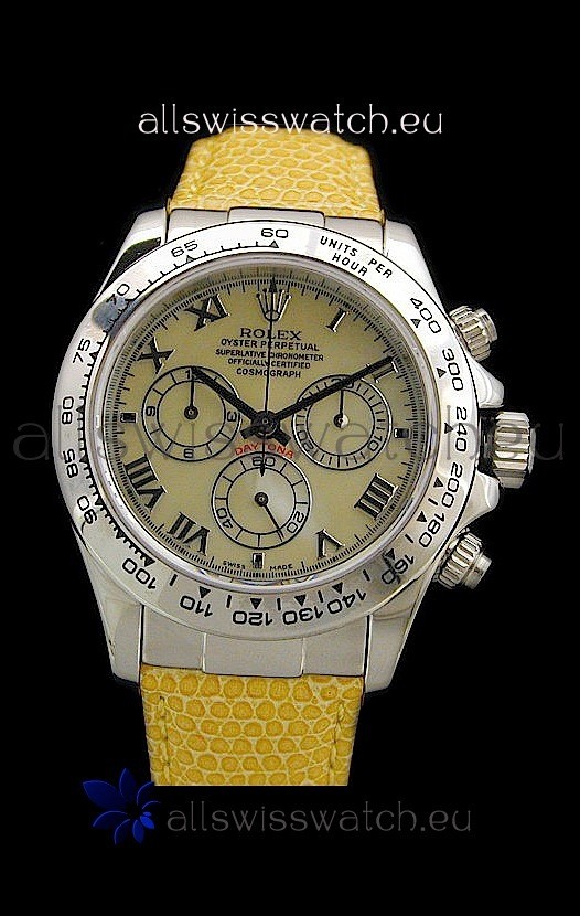 You're reviewing: Rolex Daytona Cosmograph Swiss Replica Steel Watch in Yellow Pearl Dial