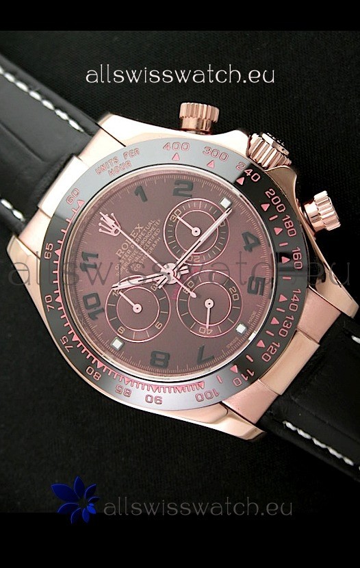 Rolex Daytona Cosmograph Swiss Rose Gold Replica Watch in Brown Dial