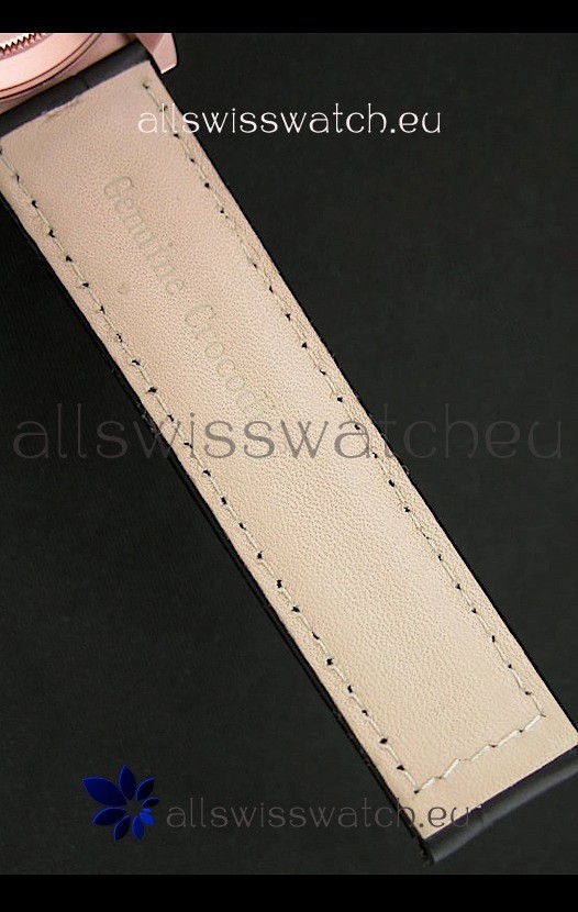 Strap: Black Leather Strap with 18K Rose Gold Plated Double Locking Clasp