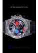 Black Dial with Multicolored Dial with SuperLumed Hour Markers. Three Functional Sub dials working in conjunction to the stopwatch feature as per the originals.