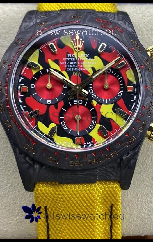 Rolex Daytona DiW Military Yellow Edition Watch - Forged Cabon Casing 1:1 Mirror Replica