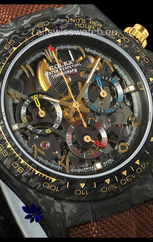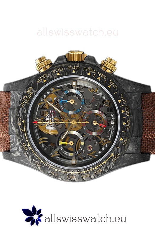 Rolex Daytona DiW Skeleton Carbon Edition Watch - Forged Carbon Casing Brown Strap 1:1 Mirror Replica