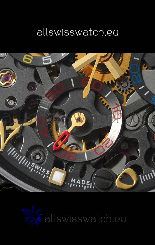 Genuine Cal.4130 Movement built from Scratch with no modifications, Platinum Plating on Rotors and Plates as per the original. The Same movement you find in Rolex Daytona Watches