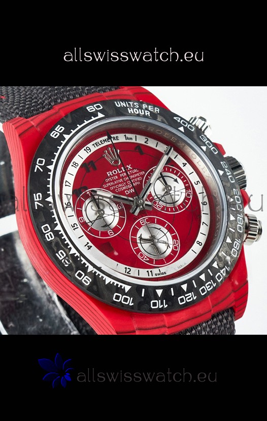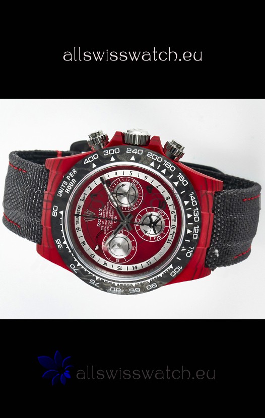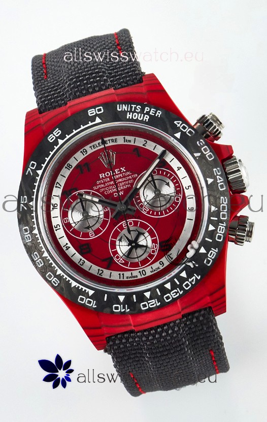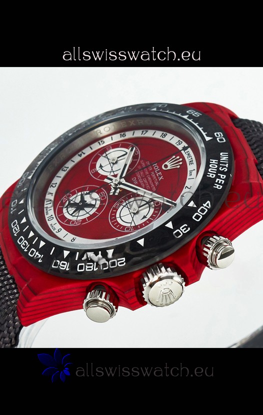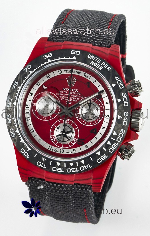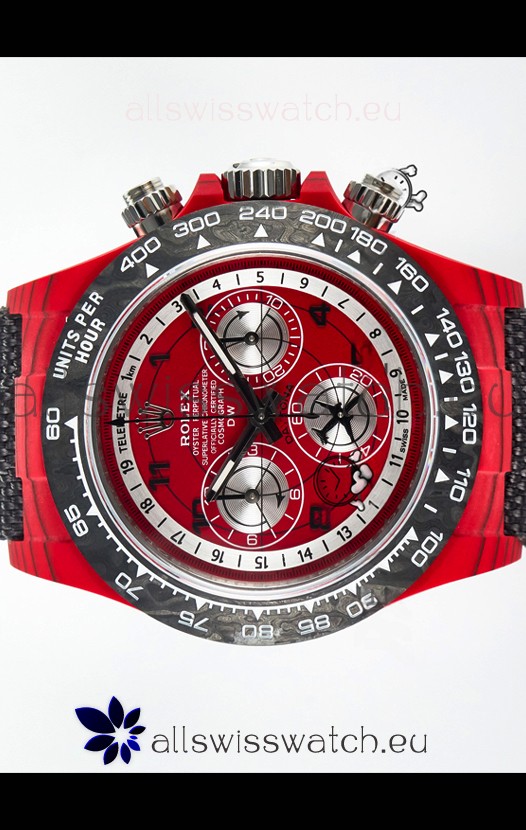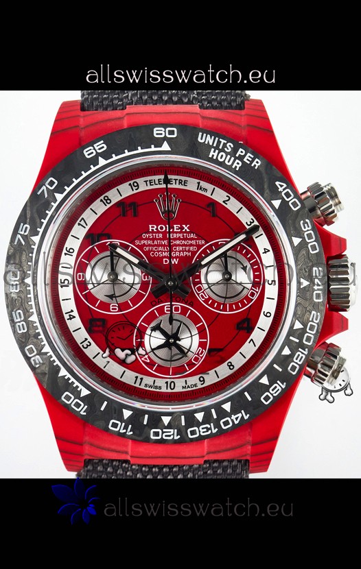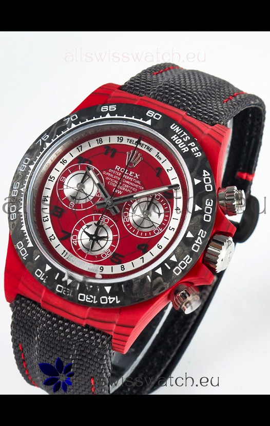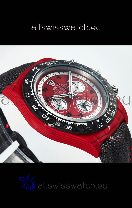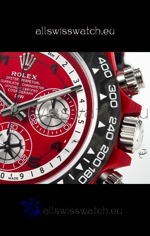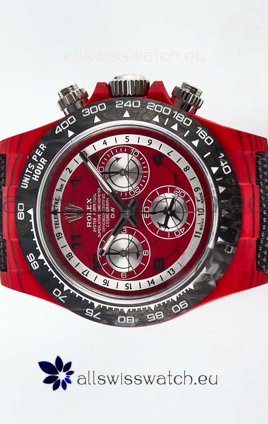 Rolex Daytona Edition Watch in Red Dial Red Carbon Casing 1:1 Mirror Replica