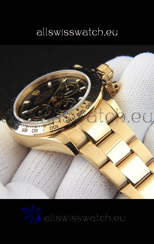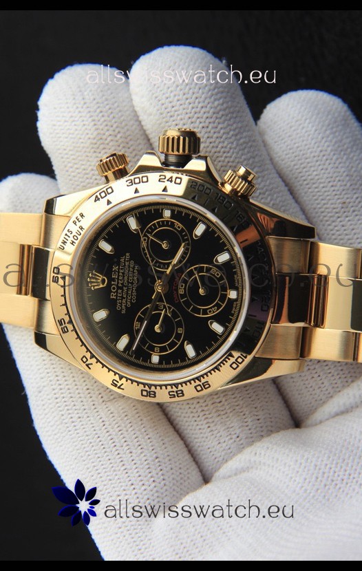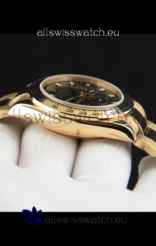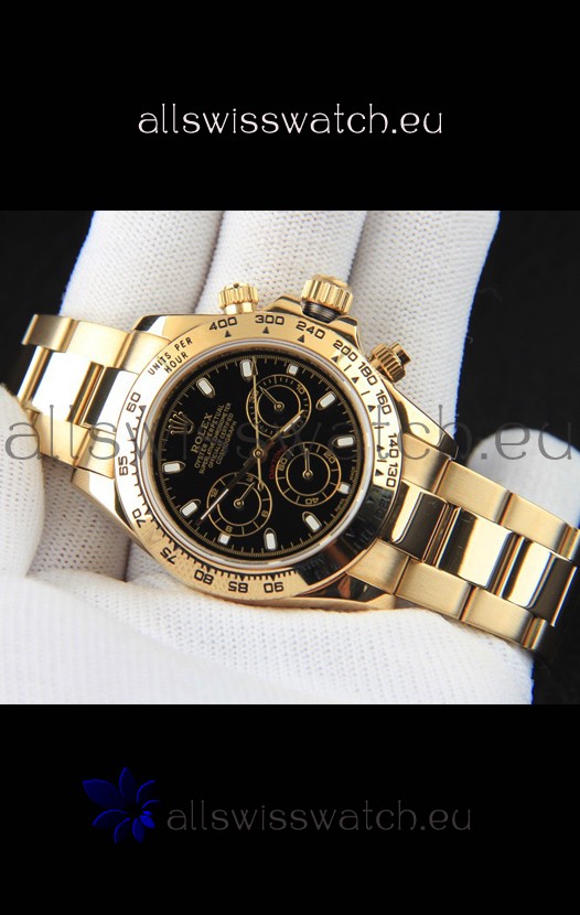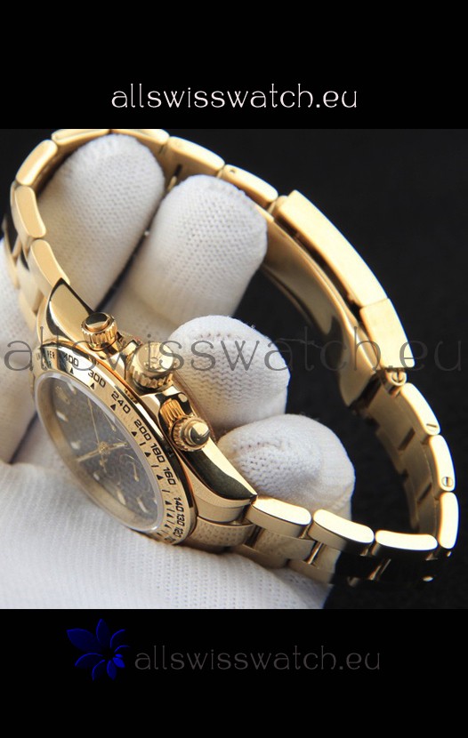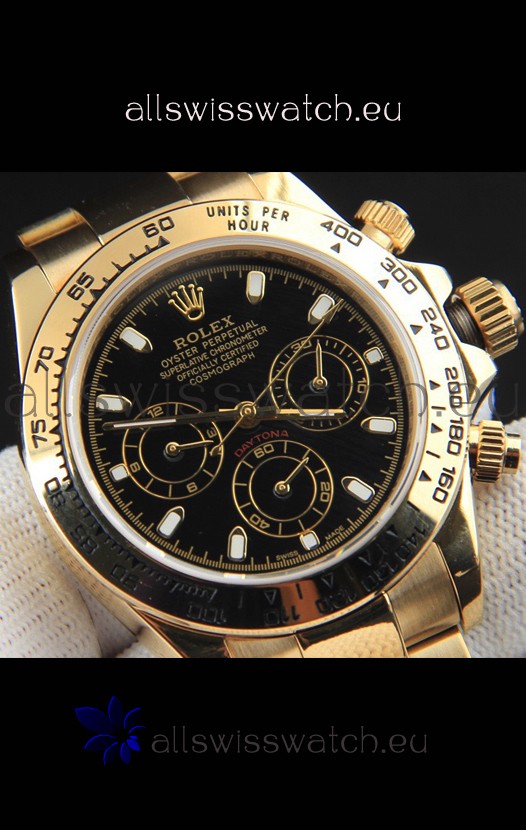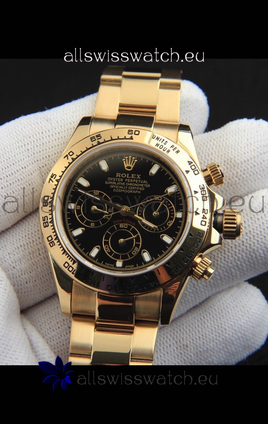 Rolex Daytona Japanese Movement Gold Casing Replica Watch in Black Dial
