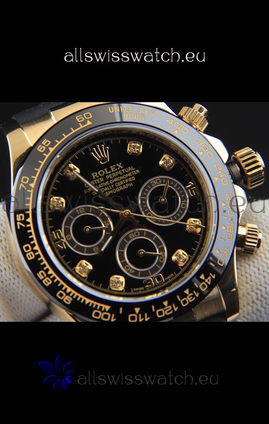 You're reviewing: Rolex Daytona Japanese Movement Gold Casing Replica Watch in Black Dial