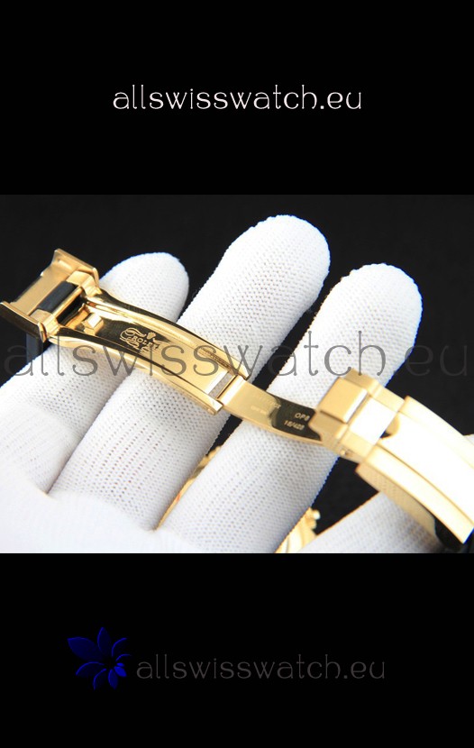 18K Gold Plating on 904L Solid Stainless Steel Case with Rolex Markings and Engravings