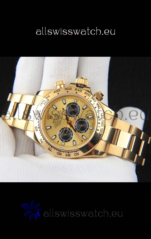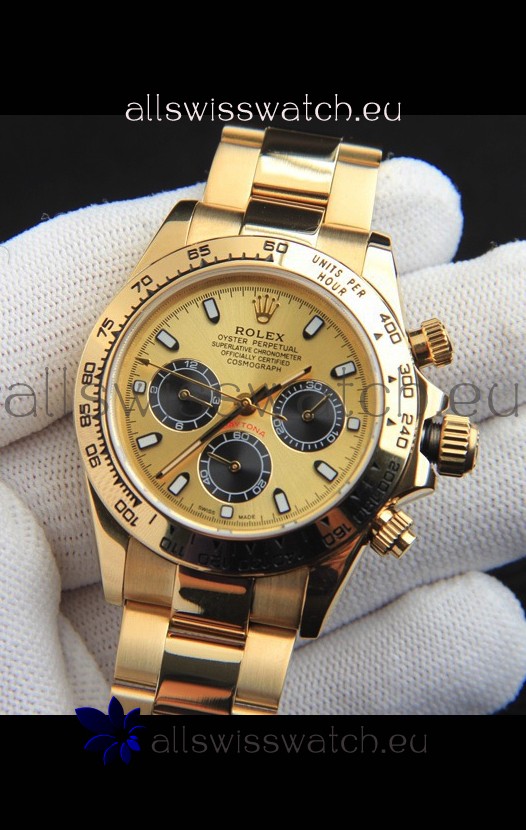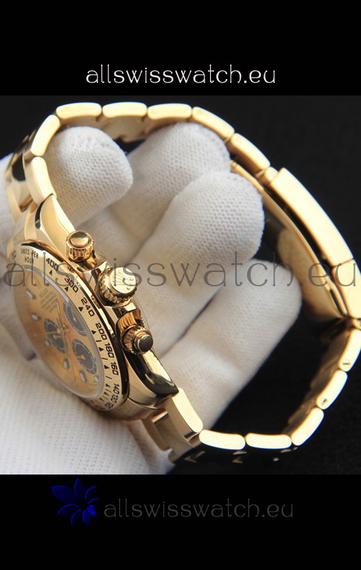Rolex Daytona Japanese Movement Gold Casing Replica Watch in Gold Dial