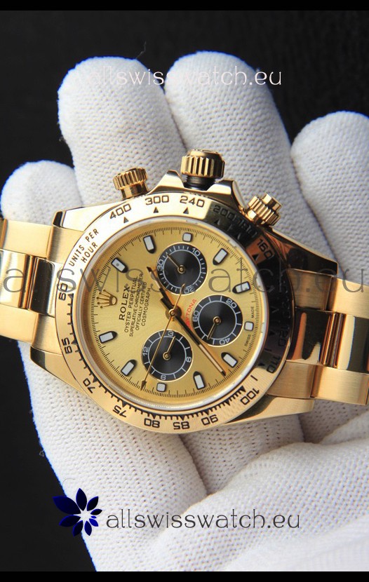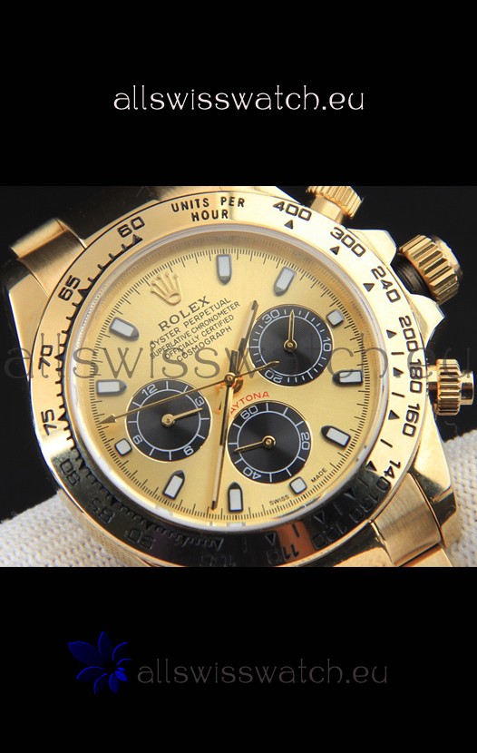 You're reviewing: Rolex Daytona Japanese Movement Gold Casing Replica Watch in Gold Dial