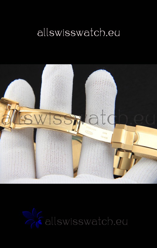 18K Gold Plating on 904L Solid Stainless Steel Case with Rolex Markings and Engravings