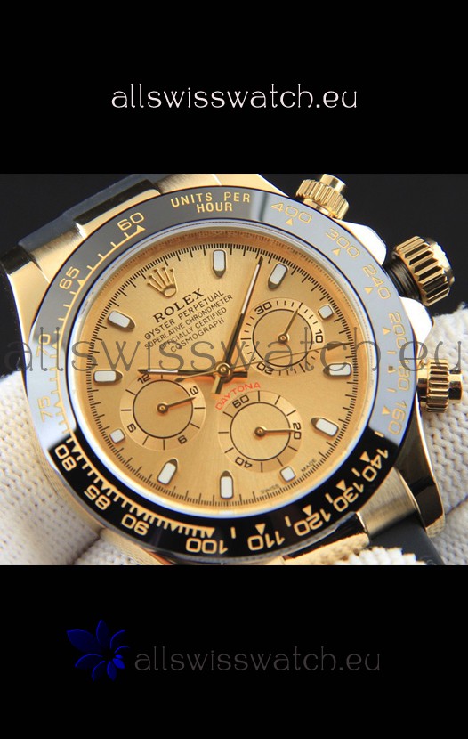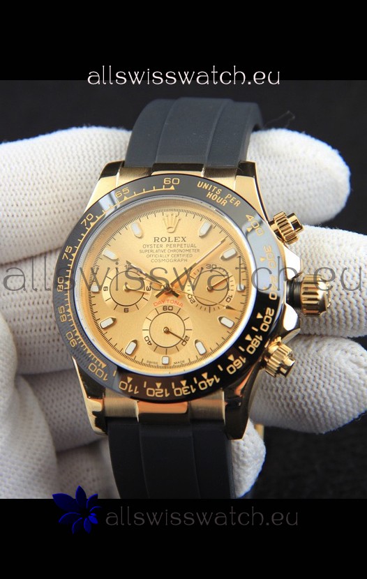 You're reviewing: Rolex Daytona Japanese Movement Gold Casing Replica Watch in Gold Dial