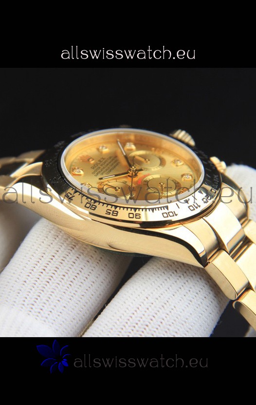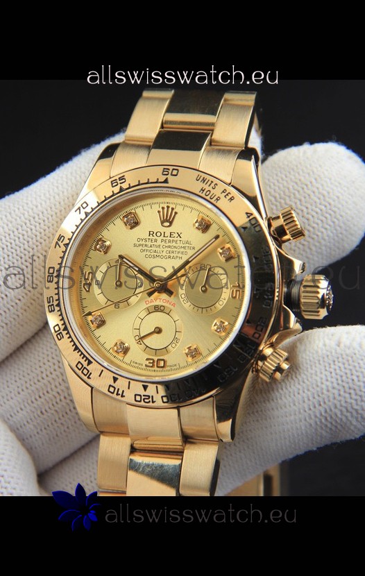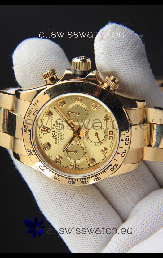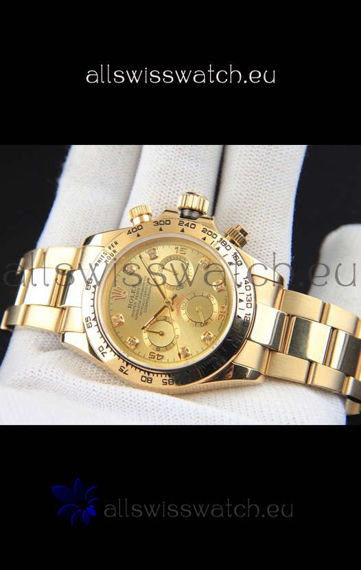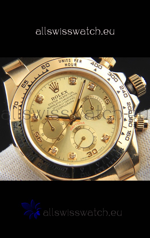 You're reviewing: Rolex Daytona Japanese Movement Gold Casing Replica Watch in Gold Dial