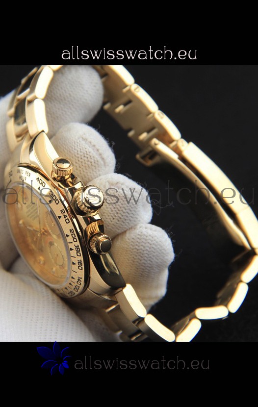 Rolex Daytona Japanese Movement Gold Casing Replica Watch in Gold Dial